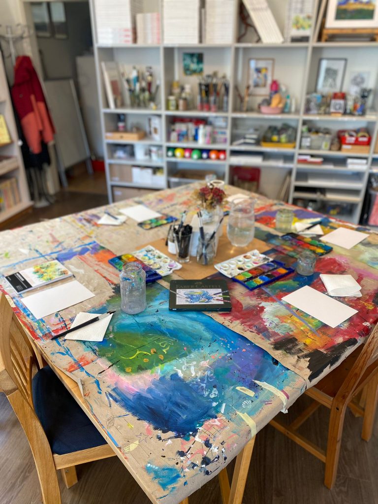 Der Malkreis findet in gemütlicher Atmosphäre statt und bietet wöchentliche Treffen für gemeinsames Malen ohne Leistungsdruck.