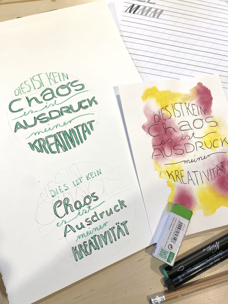 Während des Workshops werden verschiedene Lettering-Techniken vorgestellt, die den Teilnehmenden helfen, ihre Vorstellungen sichtbar werden zu lassen.